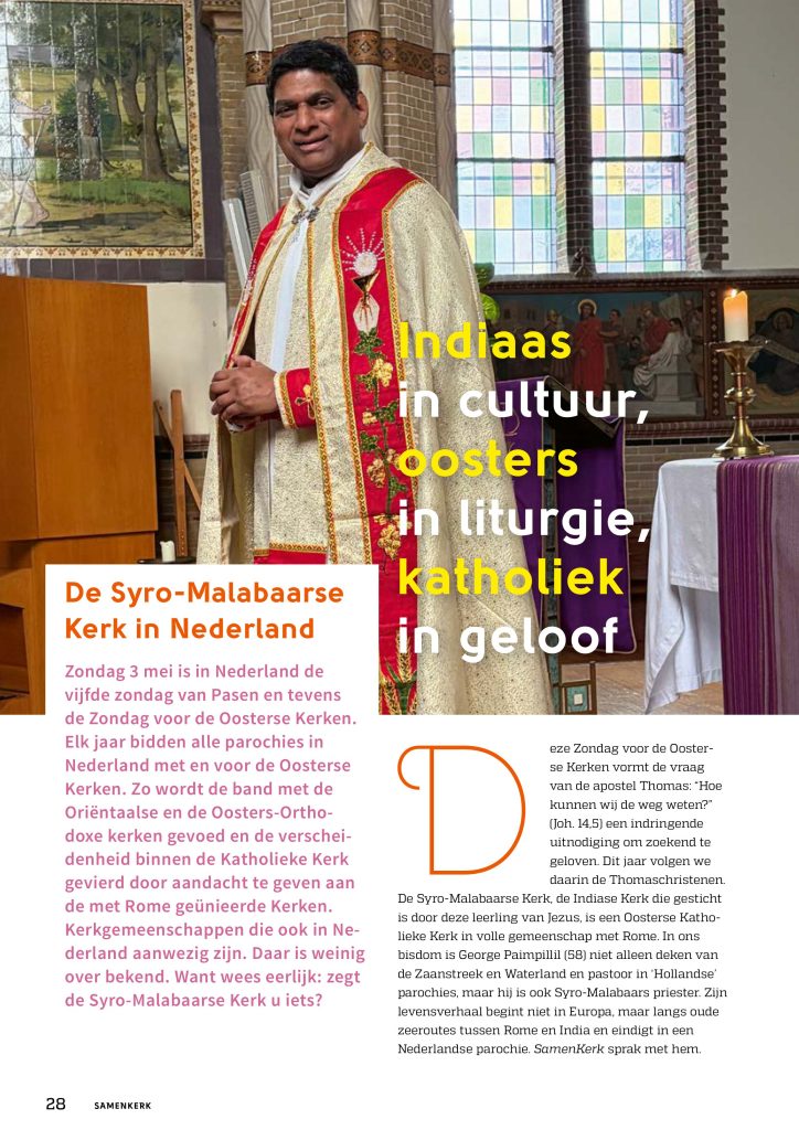 Straight from the heart – Listen to Binny Thoppil (Vice-President, Syro-Malabar Catholic Mission Netherlands) and Evangeline Mathew (Youth Member,Syro-Malabar Catholic Mission Netherlands) share why the song “Daiva Sneham Varnichidan” is close to their hearts and Dr. Fokke Wouda (Coördinator Katholieke Vereniging voor Oecumene) explain the connection of Eastern Churches with the Latin church and why this year is special for Syro Malabar community